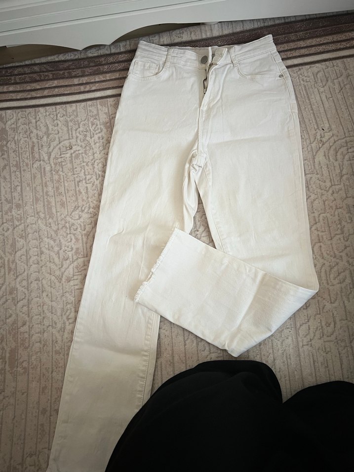Beyaz Regular Fit Kadın Midi Kot Pantolon