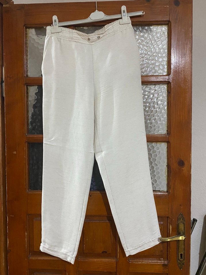 Beyaz Regular Fit Keten Kadın Pantolon