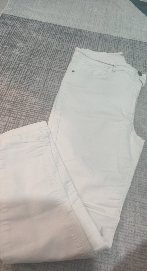 Beyaz, regular fit kot pantolon, midi boyda, sade tasarımıyla günlük kullanıma uygun. ✨