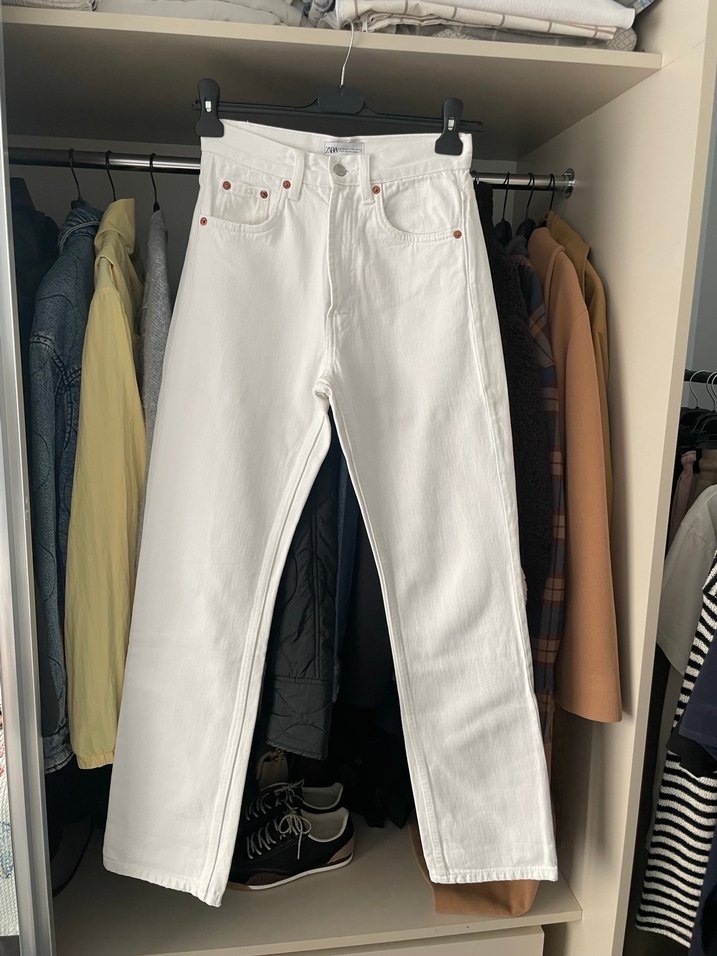 Beyaz denim kumaştan yapılmış, regular fit ve midi boy kadın kot pantolon. Günlük kullanıma uygun, rahat ve şık bir sokak stili seçeneği.