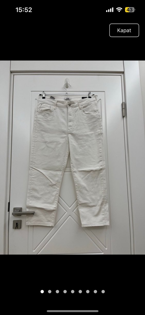 Beyaz, regular fit kesim midi boy, desen içermeyen pamuklu kot pantolon. Günlük kullanıma uygun, rahat ve şık sokak stili için ideal.
