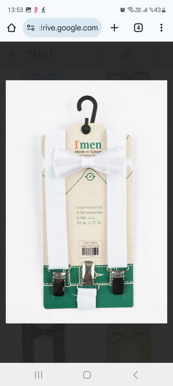 Beyaz renk çocuk pantalon askısı ve papyon takım