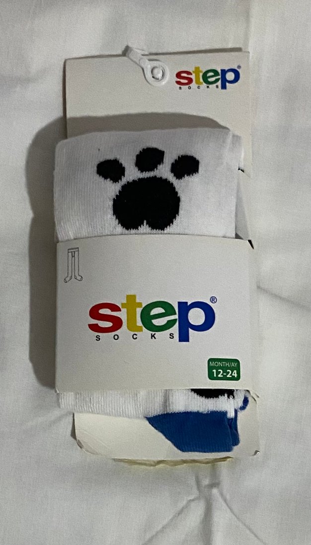 Step markalı, 12-24 ay, siyah pati desenli ve renkli baskılı erkek çocuk külotlu çorap. Ürün kullanılmamıştır. Değişim ve iade yoktur.
