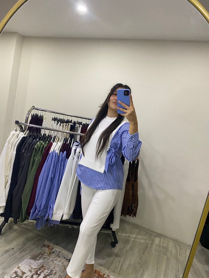 Beyaz renk pantolon ve beyaz modal kumaş ile gömlek detayıyla rahat bir takımdır. Günlük ve şık kullanım kolaylığı sağlar. S-M-L bedenleri mevcuttur.