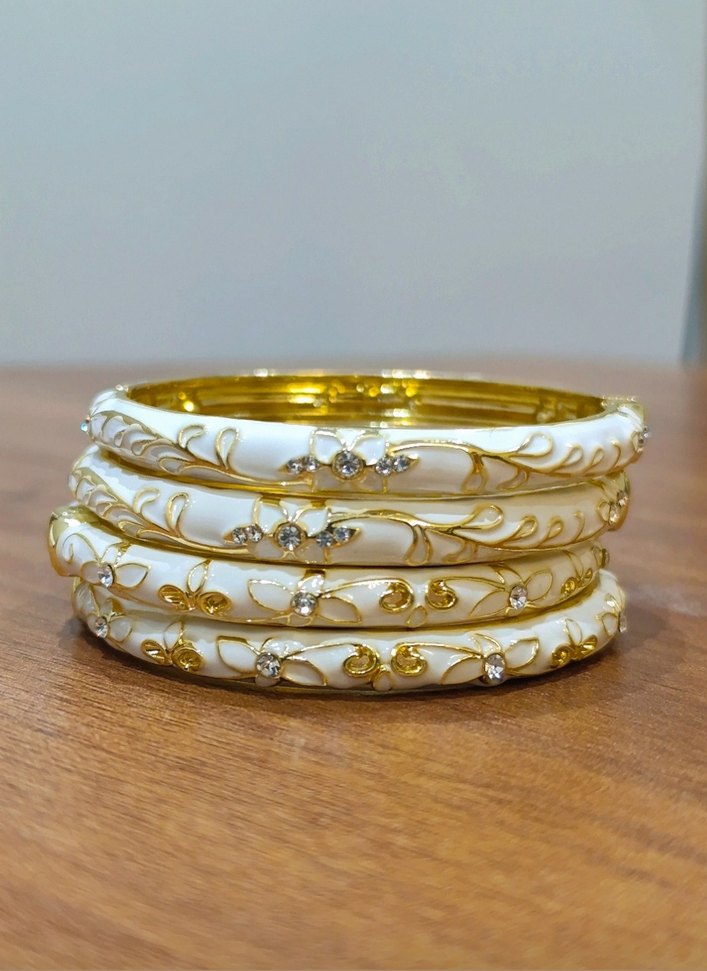 Beyaz renkte, işlemeli ve boncuk detaylı vintage tarzda bilezik seti. Düğünler için uygun, klasik ve zarif bir tasarıma sahiptir.
