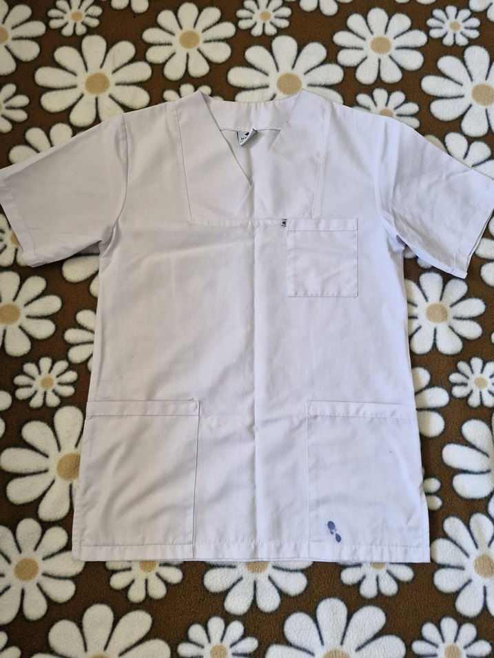 Beyaz renk Deniz İş marka scrubs üstü.Beden xs.Uzunluk 71 cm. Bel çevresi genişlik 47 cm.Fotoğrafta gözüktüğü gibi mürekkep lekesi var.Lütfen görselleri iyi inceleyin ve merak ettiklerinizi sorun , iade kabul etmiyorum.