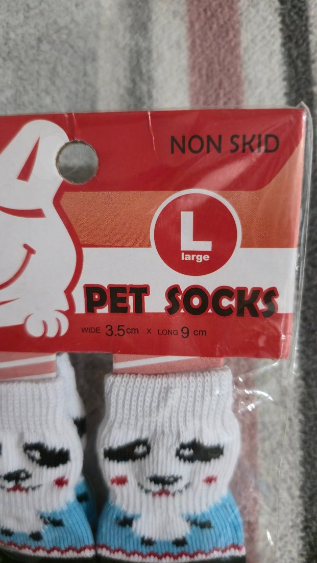 Beyaz zemin üzerine renkli baskılı, kaymaz tabanlı büyük beden köpek çorapları. Genişlik 3,5 cm, uzunluk 9 cm. sıfır bir ürün #kopekgiyim #kopekcorabi