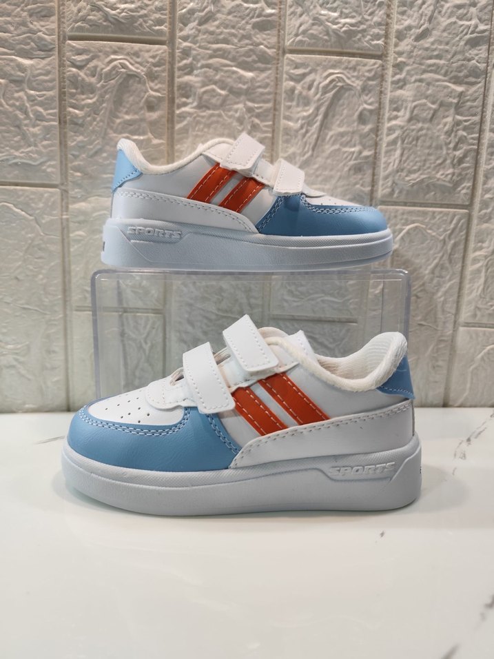 Cırt cırtlı, renkli baskılı desenli beyaz erkek çocuk spor ayakkabısı. Kauçuk tabanlı, sokak stili için uygun.