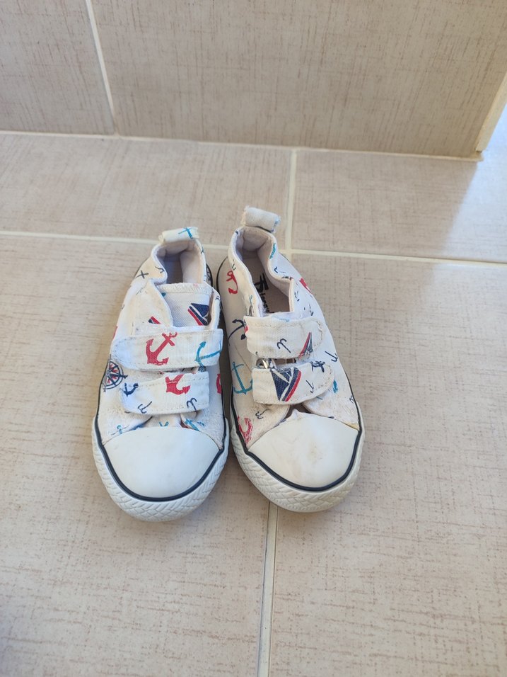 Renkli tie-dye desenli, velcro bantlı beyaz erkek çocuk spor ayakkabısı. Kauçuk tabanlı, sokak stili için uygun.