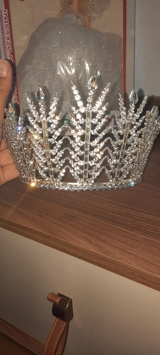 Beyaz renginde, parlak taşlarla süslenmiş gösterişli gelin tacı. Özel üretimdir. Klasik ve şık bir görünüm sağlar. ✨Düğün için sadece bir kere kullanılmıştır.