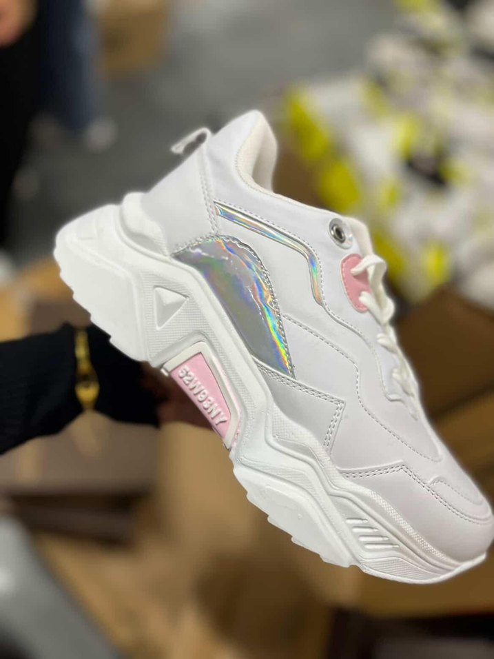 Şık ve trend tasarıma sahip beyaz kız çocuk sneaker ✨ Yan kısımlarında hologram parlak detayları ve pembe aksesuarı ile çok tatlı bir model. ✨ Kalın ve rahat taban ✨ Günlük kullanıma uygun ✨ Yumuşak iç astar ✨ Bağcıklı model ✨ Hem okul hem kombin için ideal Hem spor hem günlük kombinlerle çok uyumludur. Kalın tabanı sayesinde hem rahat hem de modern bir görünüm sağlar. Ürün temiz / sorunsuzdur.