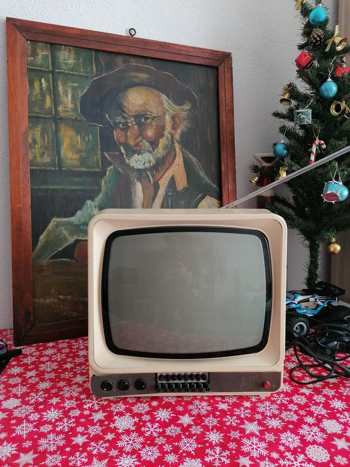 Önünde kontrol düğmeleri ve üstünde anteni olan beyaz retro tarzda monitör. Yuvarlak ekranlı ve nostaljik tasarıma sahip. Polonya menşei li çalışır durumda şahane vintage popart görünümlü tv Kargo desisi yüksek olduğu için gardrops kargo ile gönderim sağlabamamaktadır. Anlaşmalı gönderim sağlanır