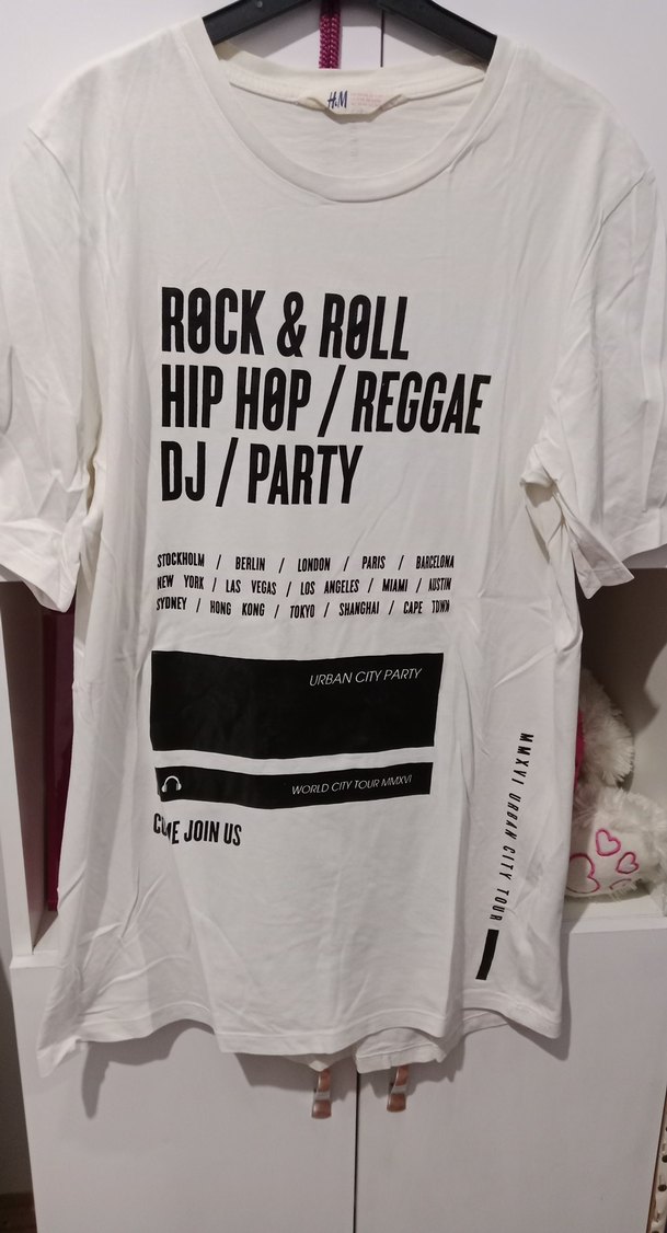 Pamuk kumaştan, beyaz renkli, kısa kollu, yuvarlak yakalı ve bol kesim erkek tişörtü. Rock, hip hop, reggae ve parti temalı baskılar içerir. Sokak stiline uygun, parti için ideal.