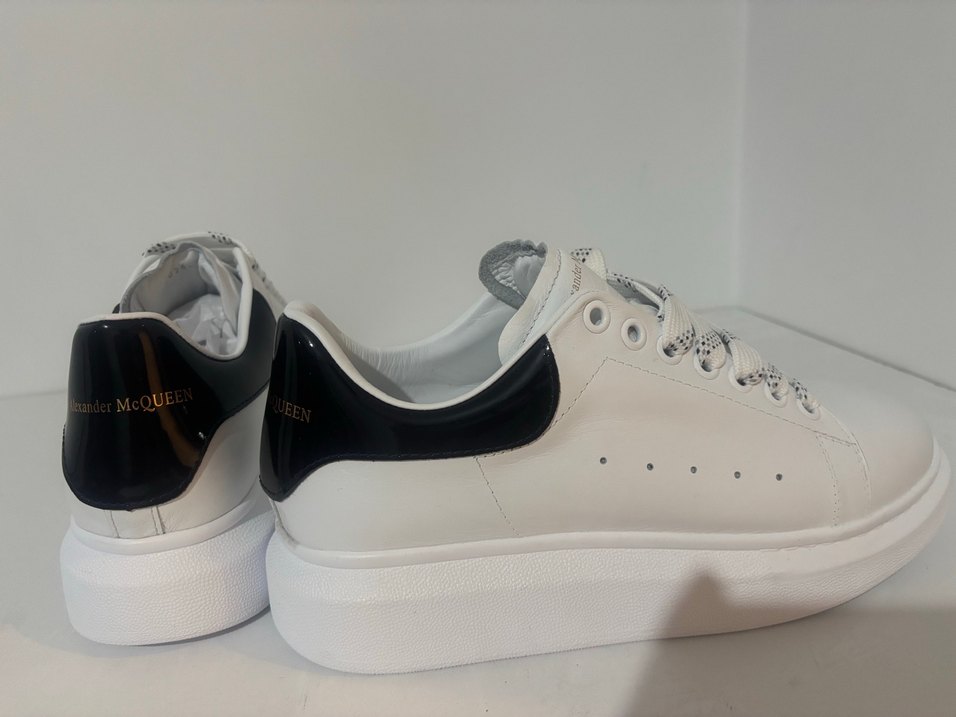 Beyaz spor ayakkabılar, parlak siyah topuk detayı ve kalın platform tabanıyla sokak stili ve modern bir görünüm sunar. ️hakiki deridir orijinaldir