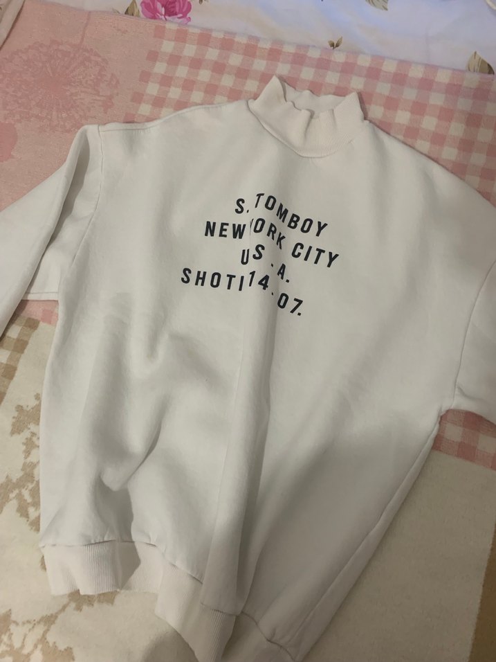 Pamuk beyaz sweatshirt, bisiklet yaka ve kısa kollu, bol kesim ve baskılı yazı detaylı. Günlük rahat kullanım için uygun. Aşırı aşırı oversize bir Sweat ben okulda vs kullandım. Hiçbir kusuru yoktur. #koton #zara #adidas #lcw #defacto #pul&bear #h&m #hotiç #converse #dior #gucci #nike #lacoste #stiletto #topukluayakkabı #kazak #triko #hırka #sweat #sweatshirt #pantolon #eşofman #pijama #pijamatakımı #eşofmanaltı #kaban #kaşekaban #çanta #sırtçantası #çaprazçanta #kolçantası #sporayakkabı #sandelet #şal #eşarp #örgükazak #haşema #kapşonlu #yazlık #yazlıkpijama #yazlıkpantolon #kumaşpantolon #pantolon #kotpantolon #mont #ceket #blazer #kolejceket #tişört #oversizetişört #oversize