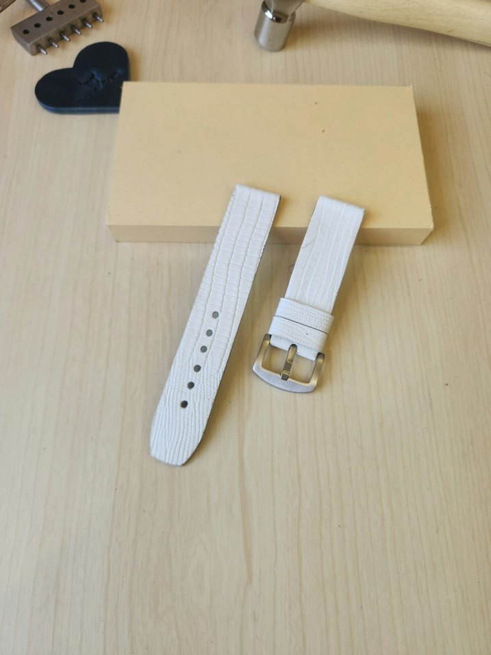 Lutfen alım için stok ve ürün bilgisi sorup özel ilan açtırın Mevcut Ilan dışında dilediğiniz Ölçüde, dikişli kenar veya dikişsiz kenar şeklinde dilediğiniz renk deri, iplik ve toka seçiminde bulunabilirsiniz. Tamamen El işçiliğiyle, makina kullanılmadan sağlamlık ve konfor ön planda tutularak, İçi ve dışı üst segment hakiki deriden yapılmaktadır. Kordonların tamamında İç astar olarakta bitkisel tabaklanmış deri kullanılmaktadır, ayrıca derinin sıvıya ve sürtünmeye Karşı direncini arttırmak icin silikonlu Kenar boyamaları yapılmaktadir. #saat #kordon #hakiki #deri #derikordon #derikayış #saatkordonu #seiko #omega #citizen #elyapimi #vintage #handmade #watch #apple #iphone #hublot #Bvlgari #cartier #hermes #iwc #patek #tagheyer #zenith #nacar #momentus #guess Gri tonlarda, dokulu beyaz minimalist erkek saat kordonu, gümüş tokalı ve çağdaş tasarımlı. ⌚