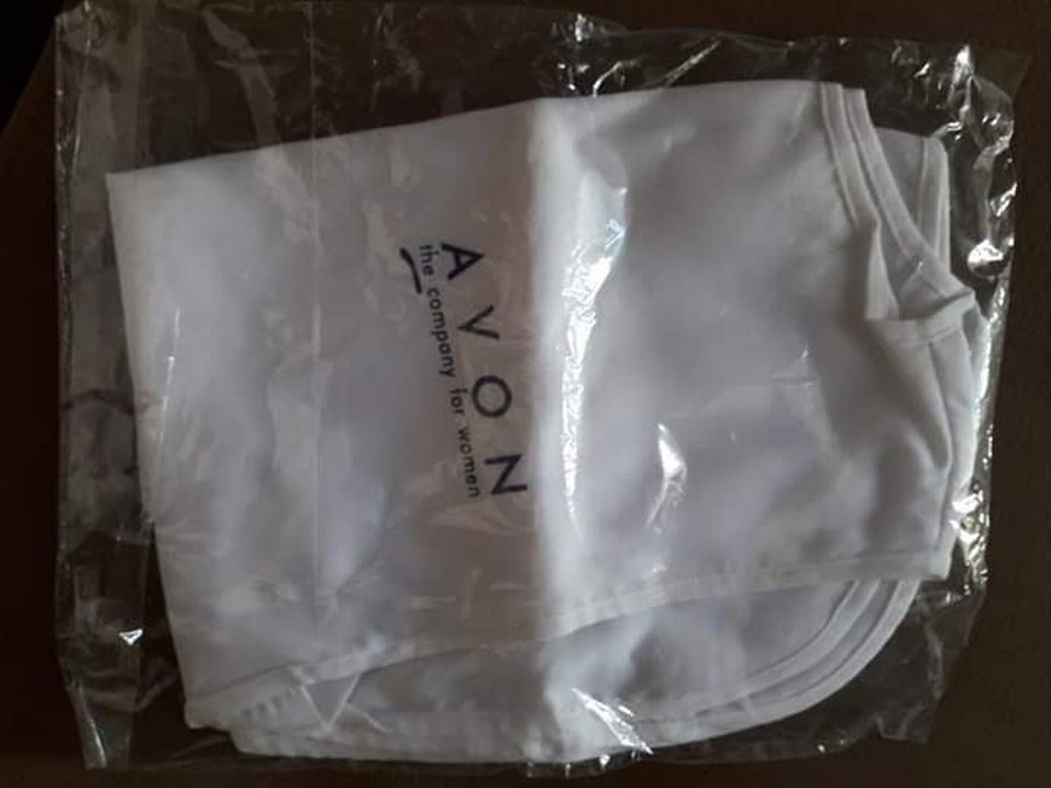beyaz renkte, AVON baskılı saç boyası önlüğü.