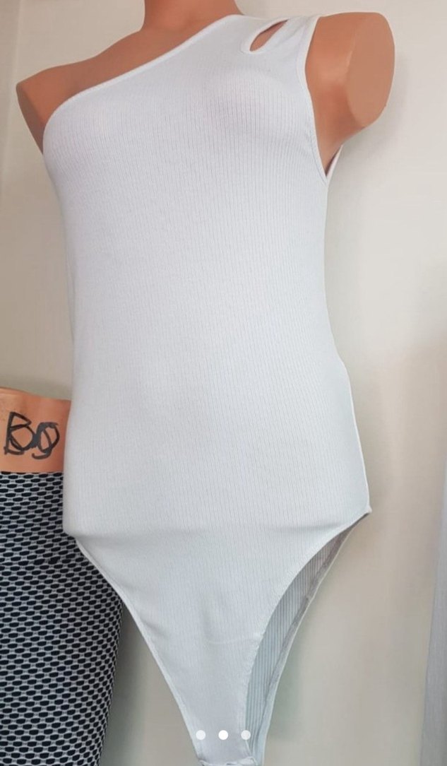 Kolsuz, düz dokulu ve vücuda oturan midi boy beyaz monokini, günlük kullanım için sade ve rahat bir seçenek.