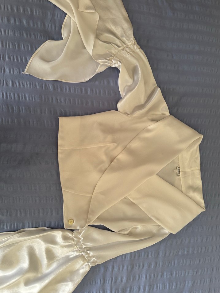 Roman 1 beden kolları voılanlı şık saten kruvaze crop şal yaka. Yaka alt kısmında görünmeyen sekılde defo var. Mınık de sarı bır leke mevcut