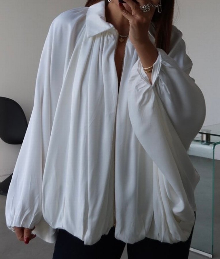 Beyaz Salaş Drapeli Kadın Gömlek ceket yarasa kol