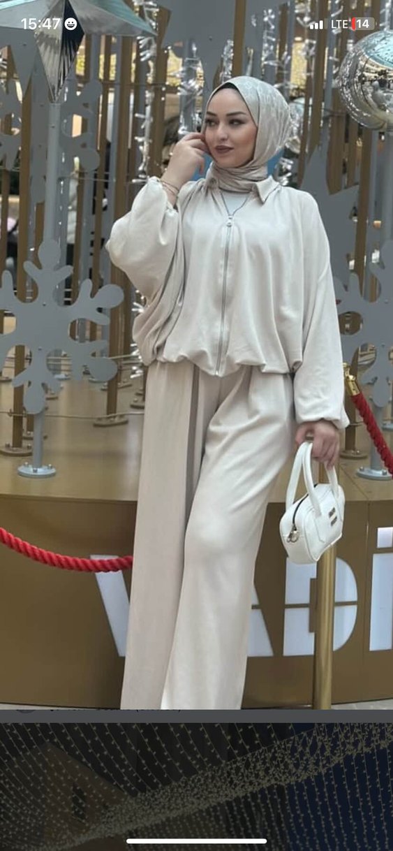 Beyaz renkte, sentetik kumaştan, salaş kesim ve uzun boyda kadın takımıdır. Yüksek yakalı ve uzun kolludur, drapeli tasarımıyla günlük sokak stiline uygundur. Standart beden