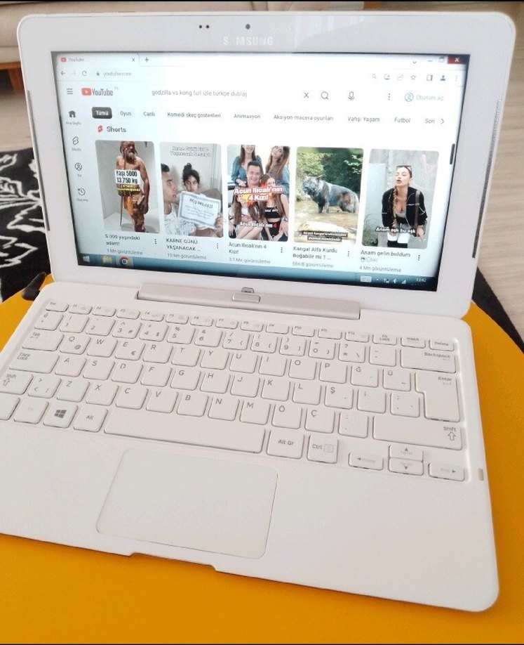 Sim kartlı windows işletim sistemli hem tablet hem dizüstü kullanılabilir Samsung 500T bilgisayar.Orijinal kalemi ve şarj adaptörü beraberindedir. Şarjı ortalama 3 ila 5 saat arası gidiyor. 2 Gb Ram 64 Gb belleğe sahiptir.