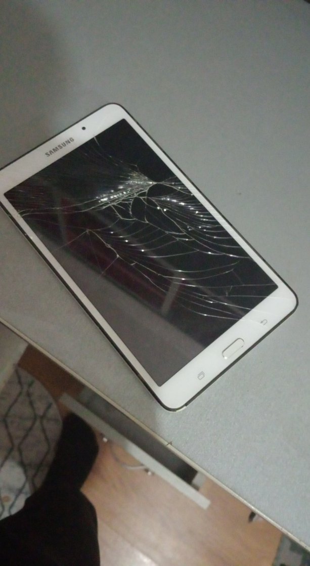 Beyaz Samsung Tablet Çatlak Ekranlı çalışıyor