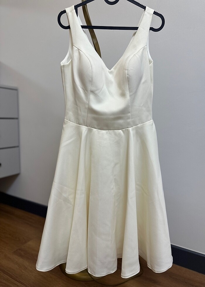 M beden. Kendinden astarlıdır. Herhangi bir deformesi bulunmamaktadır. 1 kez kullanılmıştır. Söz, nikah ve mezuniyet elbisesi olarak da tercih edebilirsiniz.