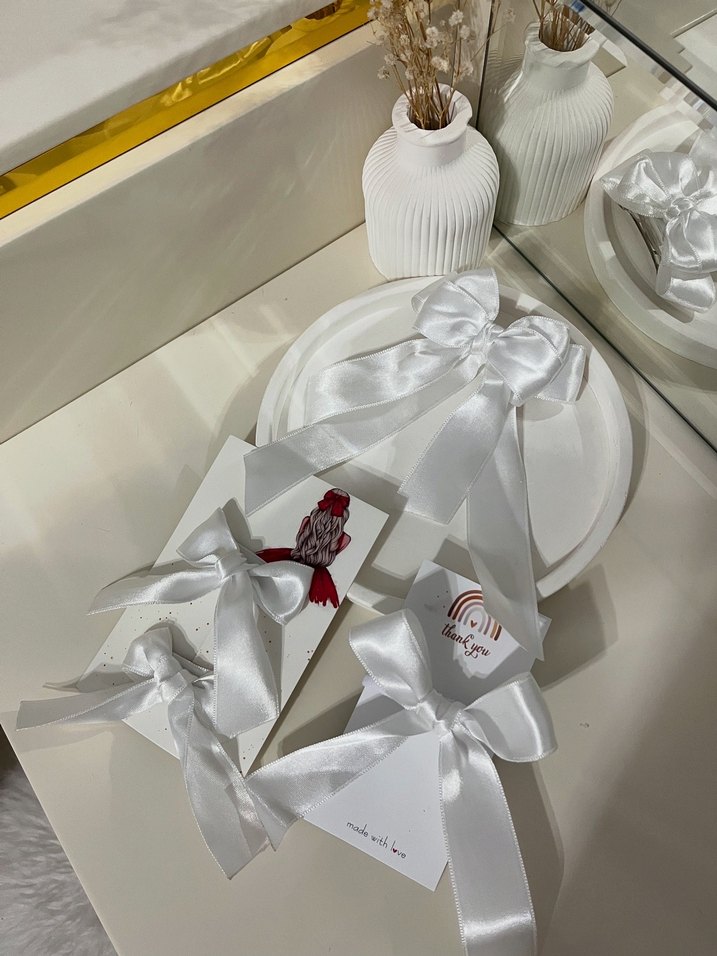 Beyaz Saten Kurdeleli Hediye Seti