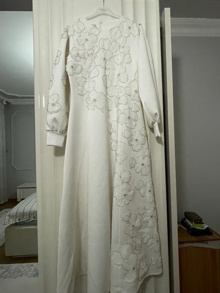 Elbise düz modeldi üzerine el işçiliğiyle işleme yapıldı. Kol kısımlarında hafif tüylenmeler var ama giyime engel değil şık bir elbise