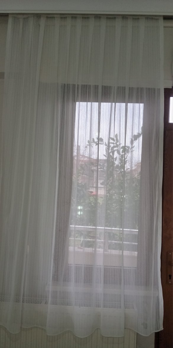 Hiç kullanılmamış tül perde 100 cm en, 195 cm yüksekliktedir (f36)