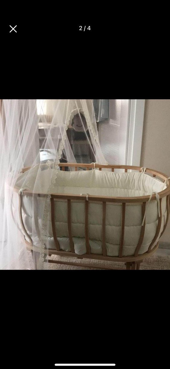 Ahşap çerçeveli, beyaz dolgulu ve hafif tasarımlı sepet beşik. ️
