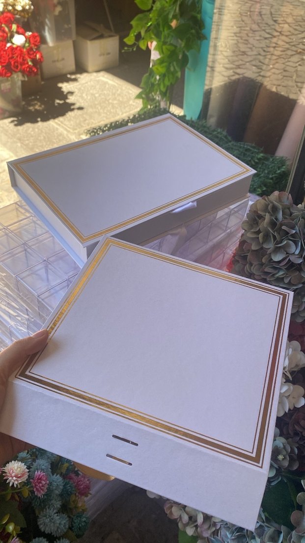 Gençler için uygun, hafif renkli beyaz kağıt kutu oyun seti. Kutularda sade ve şık altın çerçeve bulunur.