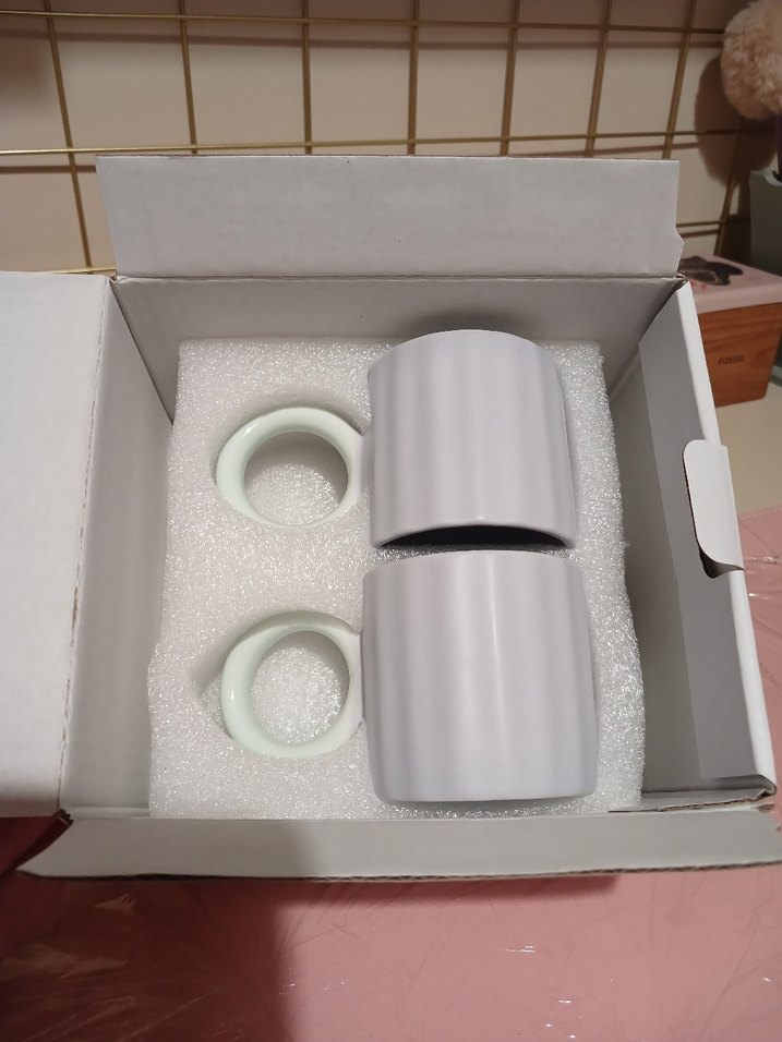 Kabartmalı tasarıma sahip beyaz seramik 2'li fincan seti, koruyucu köpük içinde kutusunda yer alıyor ☕. Hediye geldi,hiç kullanılmadı.