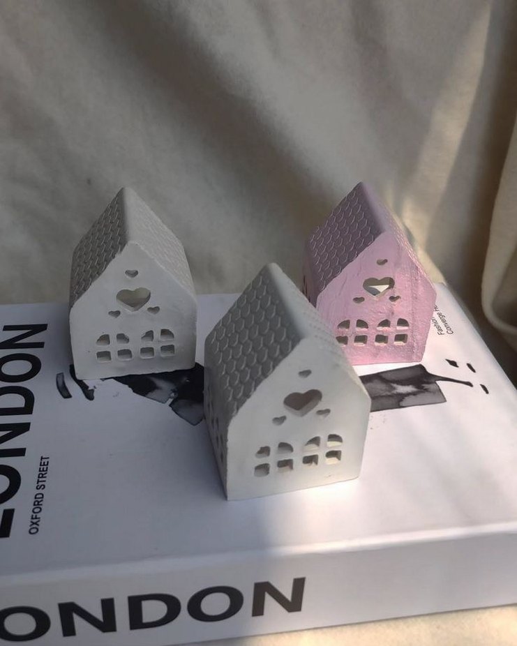 Kalp ve pencere detaylı, beyaz seramik ev şeklinde mumluklar, dekoratif aydınlatma için uygundur. ️