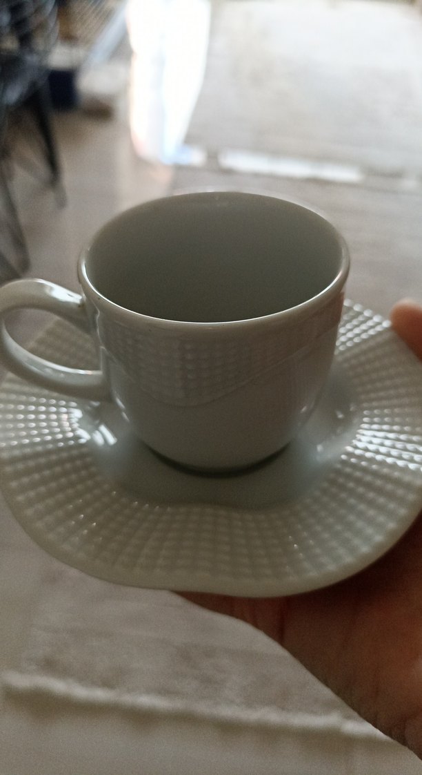 Dokulu yüzeye sahip beyaz porselen fincan takimi altili