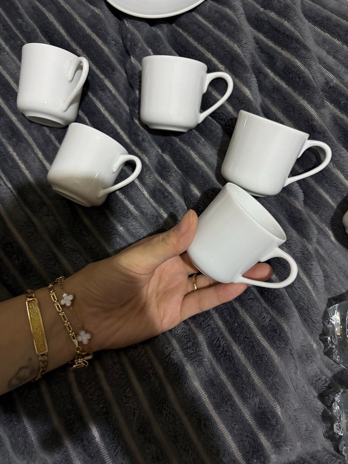 Kulplu beyaz seramik fincan seti, sıcak içecekler için uygun, sade ve şık tasarım. ☕ yanında su bardağı hediyeli