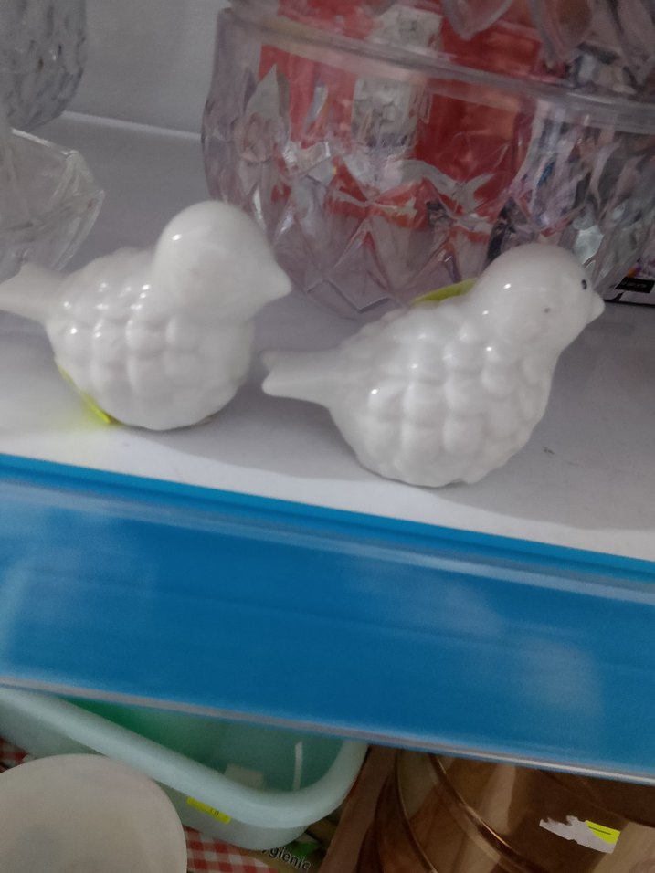 İki adet beyaz seramikten yapılmış, parlak ve pürüzsüz yüzeye sahip kuş biblo seti. ️ıkı adet fiyat