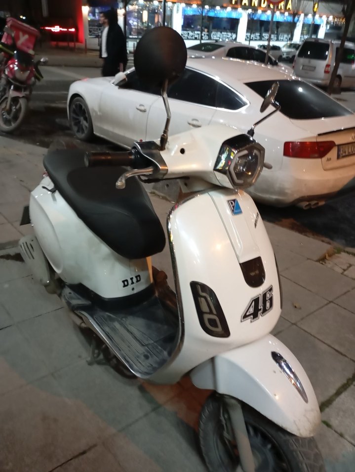 Beyaz seramik malzemeden, baskılı desenli ve tokalı kayışlı motosiklet kaskı. Sokak stili için uygun. "DID" yazısı mevcuttur. ️