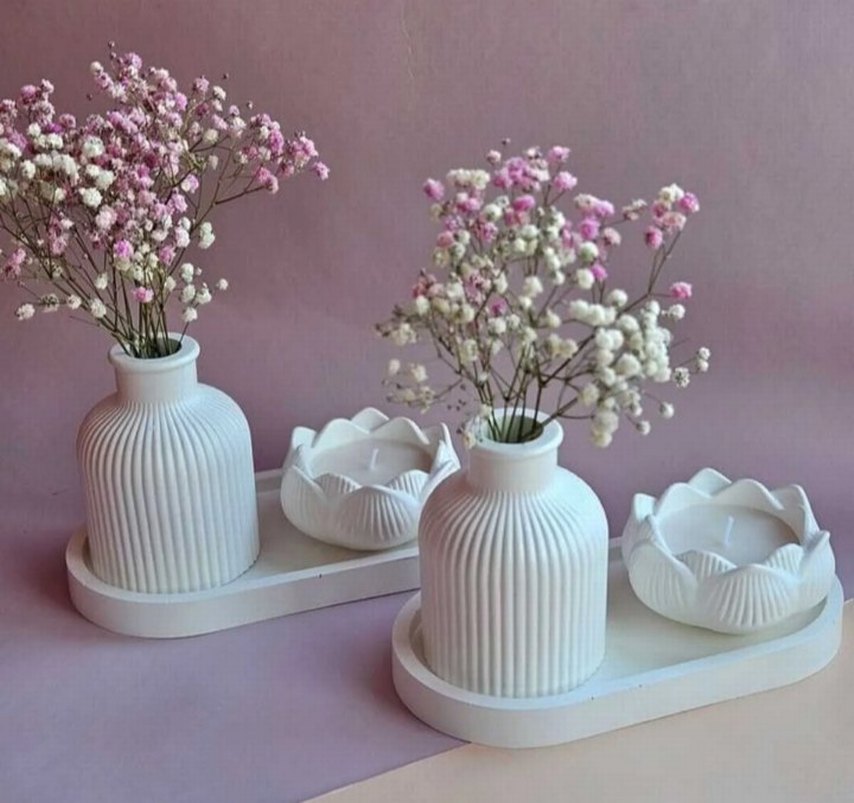 Beyaz Seramik Mumluk ve Vazolar Seti