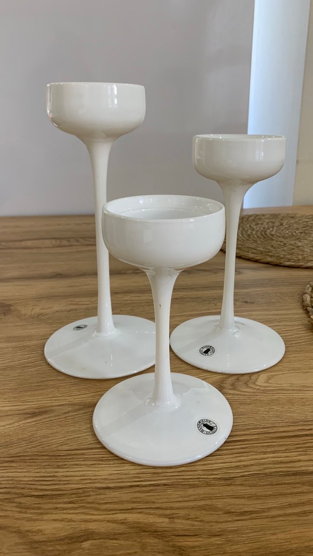 Farklı yüksekliklerde, parlak yüzeyli beyaz seramik şamdan seti. Masa dekorasyonu için uygundur. ️etiketi üstünde hasarsız kusursuz ikea