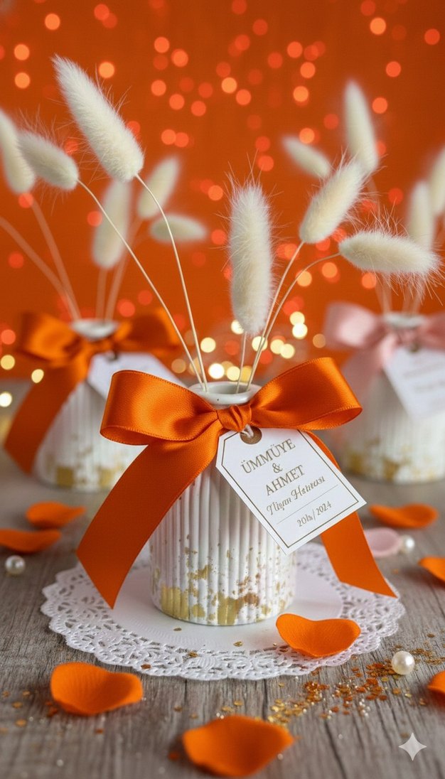 Beyaz Seramik Vazo ve Turuncu Kurdela