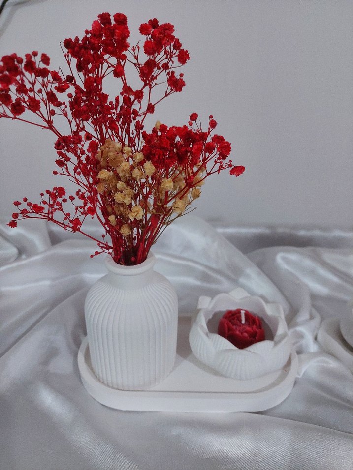 1 adet vazo 1 adet isteye bağlı ya bulut tepsi ya da oval tepsi (sipariş verince belirtin lütfen) 1 adet lotus mumluk cipsolar fiyata dahil değildir