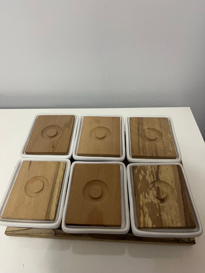 Beyaz Seramik ve Ahşap Kapaklı Kahvaltı Seti