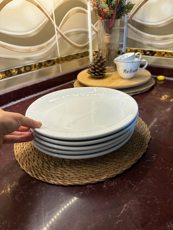 Pürüzsüz yüzeyli beyaz seramik yemek tabaklarından oluşan set, yemek servisi için uygun. Temiz ve sade tasarıma sahip. ️