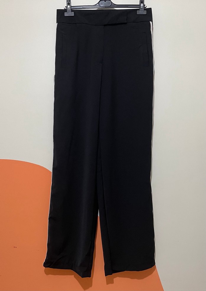 Beyaz Şeritli Kadın Siyah Kumaş Pantolon