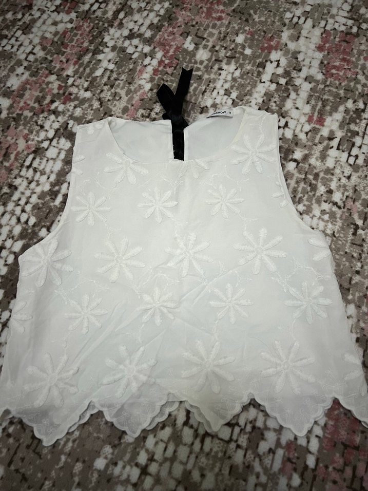 Beyaz çiçekli sıfır kol crop arka siyah ip detaylı