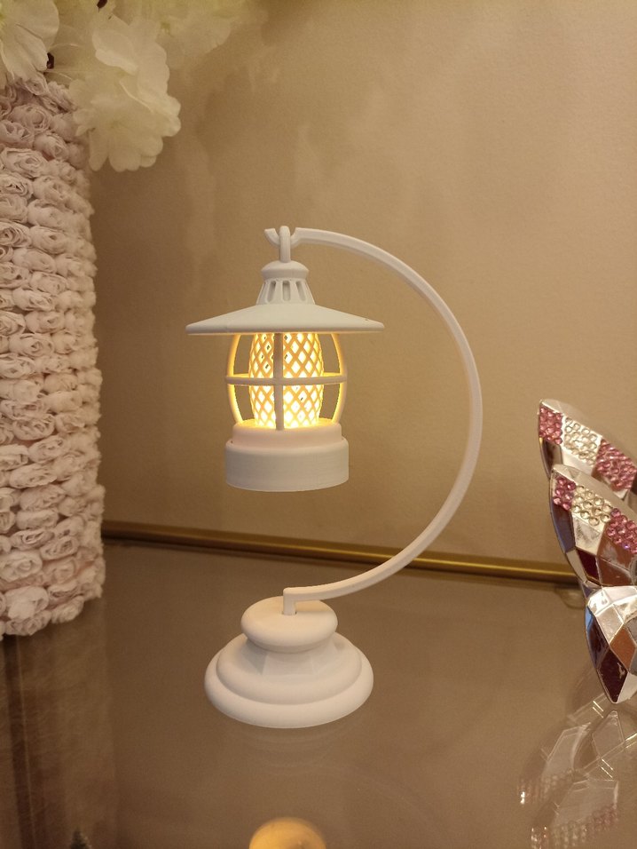 Beyaz renkli, kavisli standlı ve fener tarzı mumluk, yumuşak ışıkla sıcak bir atmosfer sağlar. ️