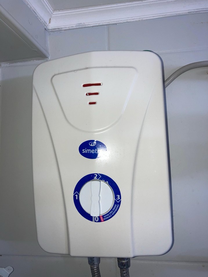 Ayarlanabilir sıcaklık kontrolü ve gösterge ışıkları bulunan beyaz Simeti duvar tipi ısıtıcı. Etkili ısıtma sağlar.