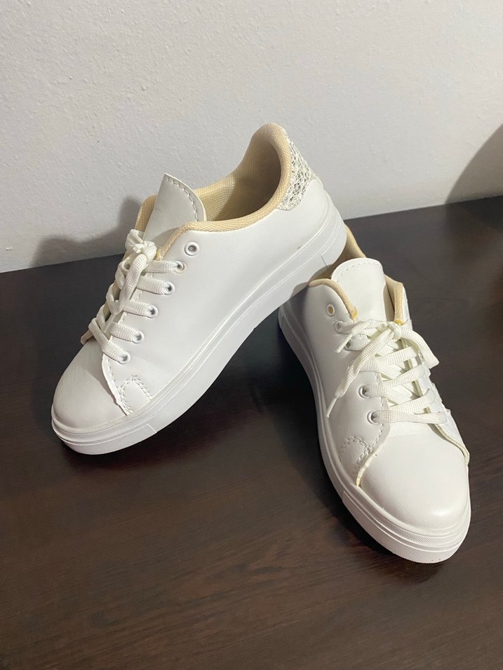 Beyaz simli Bağcıklı Spor Ayakkabı